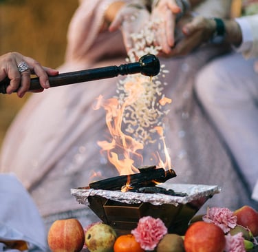 Sacred fire (Homa) is essential. Get permission for indoor ceremonies and hot to turn off alarms during the ritual safely.Use discreet photography and videography